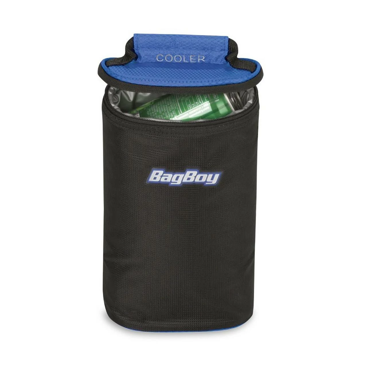- Removable, insulated cooler bag holds four 12-ounce cans