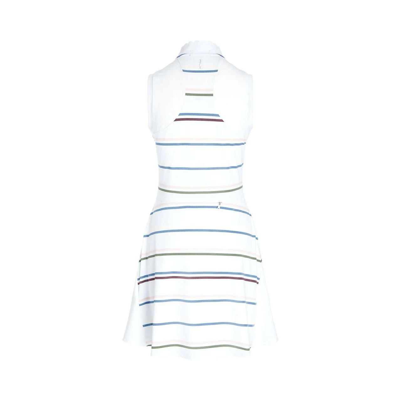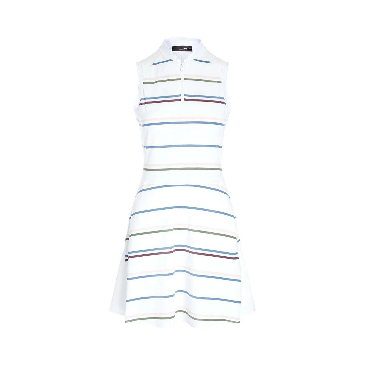 Made from stretch piqué, this striped dress features a scalloped baseball collar and inset mesh panels.Its fit-and-flare silhouette and interior shorts are outfitted with ample pockets.